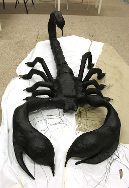 Skorpion auf Pappmaché-Basis, 200x100x60 cm, Gemeinschaftsarbeit mit Marlis Debus, 2015