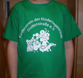 Logo und T-Shirtaufdruck "Förderverein der Kindertagesstätte Dudenstraße e.V.", 2012