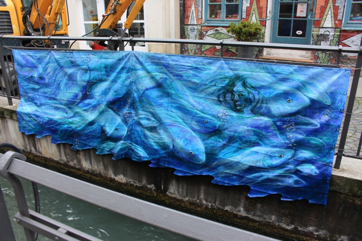 Acrylbild auf Gewebe, ca. 400x120 m, angefertigt für die Open Air Ausstellung "Kunstspaziergang" in der Augsburger Altstadt, 2020